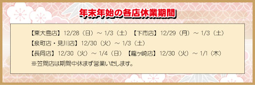 | 電話番号:029-221-9768 営業時間:10:00〜18:00 店休日:毎週水曜日 |